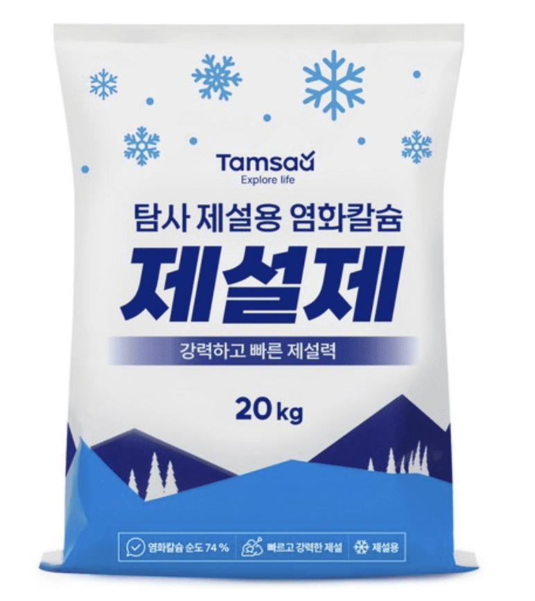 집 앞 눈 치우기에는 염화칼슘과 제설삽이 필수입니다. 가정용 염화칼슘은 5kg 기준 1만 원대에 구매 가능하며, 1평당 100~200g 정도 뿌리면 됩니다.